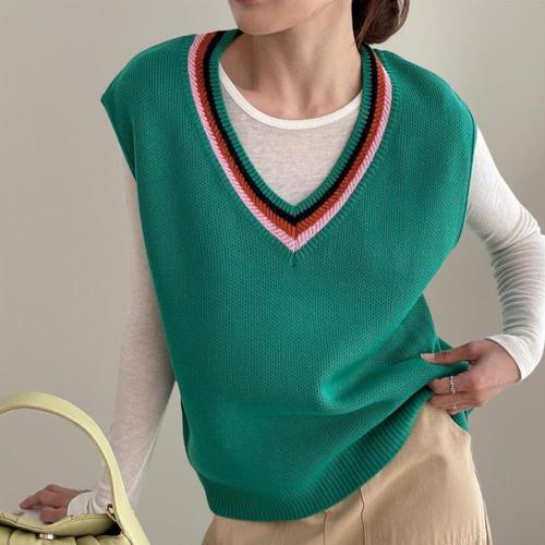 [신상오픈런]여자 무지개 브이넥 가을 데일리룩 베이직핏 니트조끼