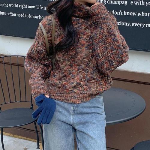 [옷자락]여자 보카시 그런지 폭닥 하이넥 FW 무지개 니트