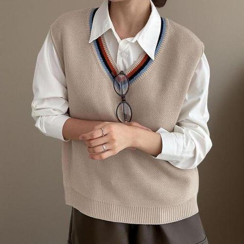 [옷자락] 여성 무지개 브이넥 가을 일상복 기본핏 니트조끼