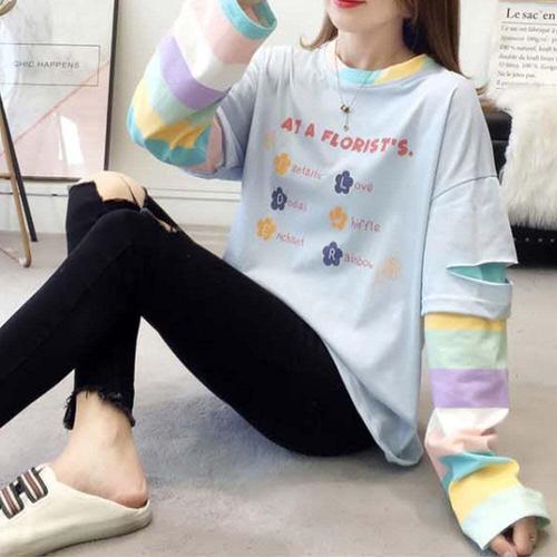 [셀럽하우스]대학생 GHBR6020 포인트 여사친룩 소매 데일리 패션 무지개 옷