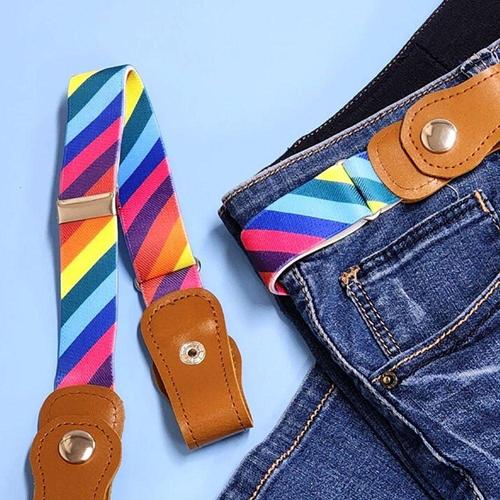 [에이치플러스몰]프리 패턴 벨트 무지개 노버클 무압박 탄성벨트