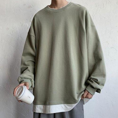남성 루즈핏 캐주얼 맨투맨 라운드 무지 티셔츠 데일리 외출복 WFLMD8Z