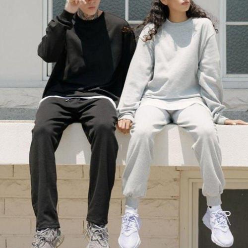 [1 + 1] 하믄 남자 기모 오버핏 무지 맨투맨 티셔츠 세트