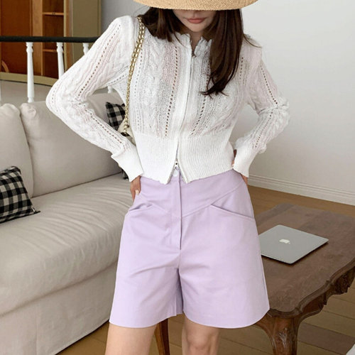 옷자락 / 여자 무지컬러 포켓 스티치 절개 면혼방 반바지