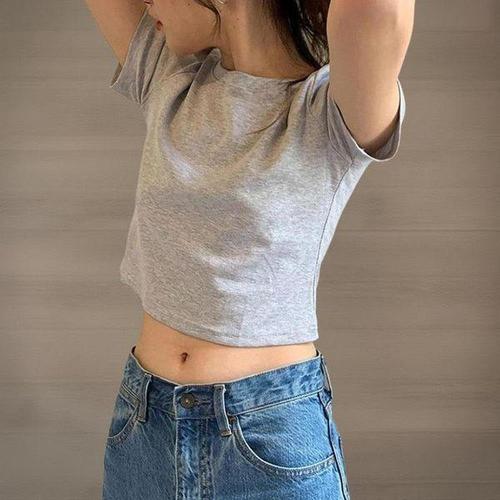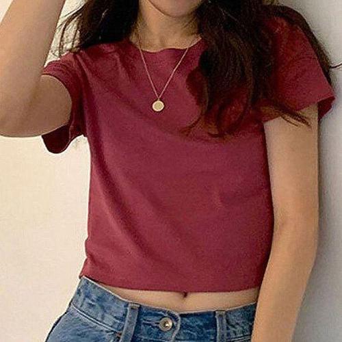 [신상오픈런]여성용 데일리 무지 컬러 라운드넥 크롭 반팔 티셔츠