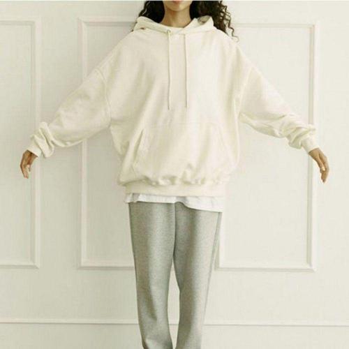 여자 데일리룩 무지 기모 후드티 긴팔 티셔츠 패션