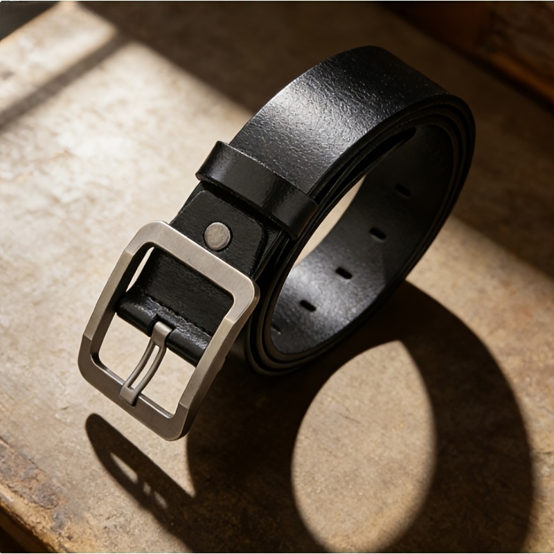 TEMU 남성용 정품 가죽 벨트, 패셔너블 핀 버클 합금 - 캐주얼하고 다재다능, 스트리트 스타일에 적합, 좋은 선물 선택