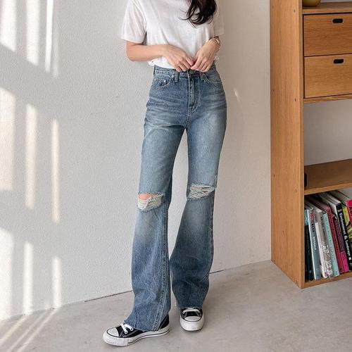 [다잇템][다잇템] 여자 디스트로이드 나팔 무파진 슬림핏 SS 청바지_17156733_588872