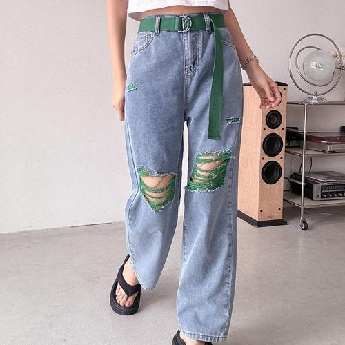[신상오픈런]|KSP748E|크르덩 무파진 데미지 여성 넓은 데님팬츠 구제 Y2K_18173148_597559