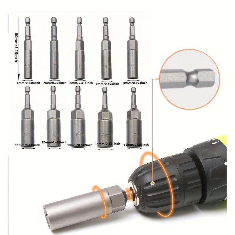 TEMU 10개 엑스트라 딥 1/4 인치 육각 섐크 너트 임팩트 드라이버 소켓 어댑터 세트, 핸드 & 리튬 전기 드릴, 전동 공구 액세서리, 배터리 불필요
