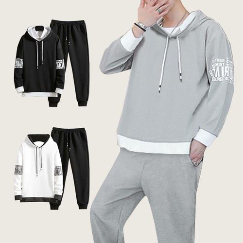 남성 스포츠웨어 세트 - 후드 스웨터 + 바지 세트 - 캐주얼 스포츠웨어 - 패셔너블 - 편안한 아웃도어 세트
