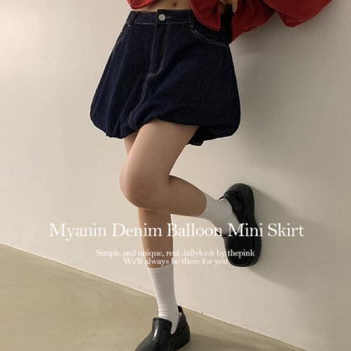 더핑크 / 먀닌 논페이드 생지 데님 벌룬 미니 스커트