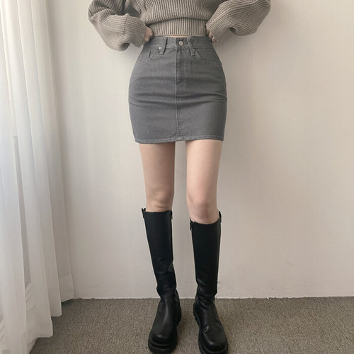 [셀러허브_여성트랜드패션]미니 데님스커트 봄 여름 가을 H라인 생지 스판 청치