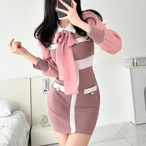 [신상오픈런]|KMO44FB|텐스니 매듭 분홍색 여성 윈터 미니원피스 주머니 시스루_18170122_597559