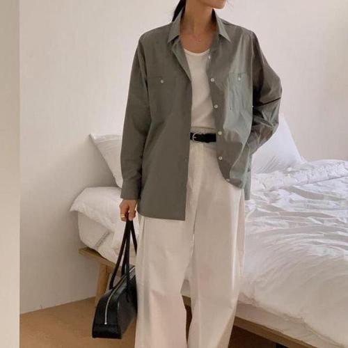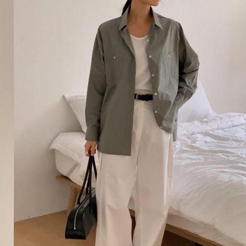 [다잇템]여성 면원단 미니멀리즘 빅사이즈 주머니 남방