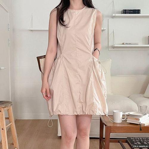 [옷자락] 여자 투웨이 스트링 호박 민소매 절개 포켓 미니원피스