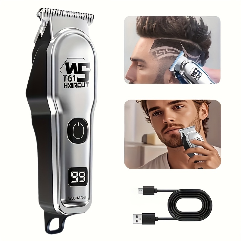 TEMU 전문가용 LED 디스플레이 전기 면도기, 4개 빗 포함, USB 충전식 미니 휴대용 헤어 클리퍼, 이발사 및 스타일리스트에 이상적, 가정용으로 적합, 남성에게 완벽한 선물