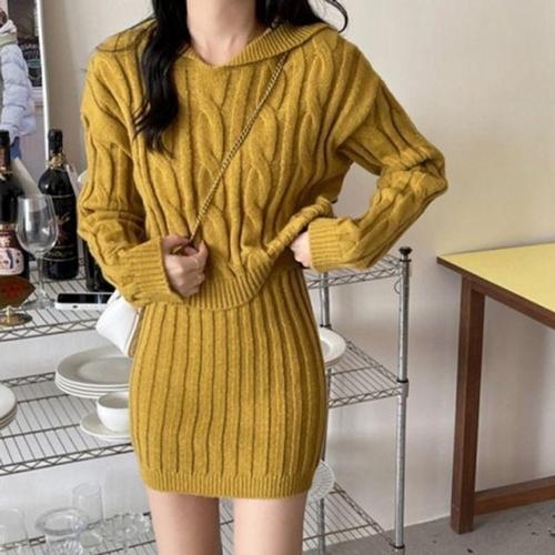 [셀럽하우스]버튼 ORBF5032 미니 스커트 데일리 투피스 니트 세트
