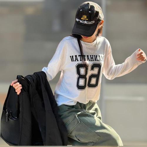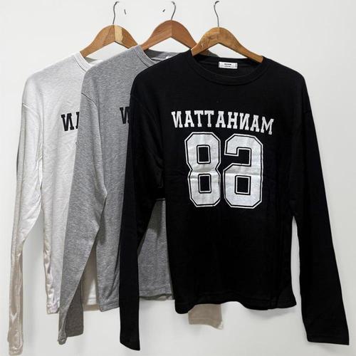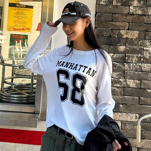 [미라클세븐]여성용 Y2K 기모 긴팔 무채색 프린트 티셔츠