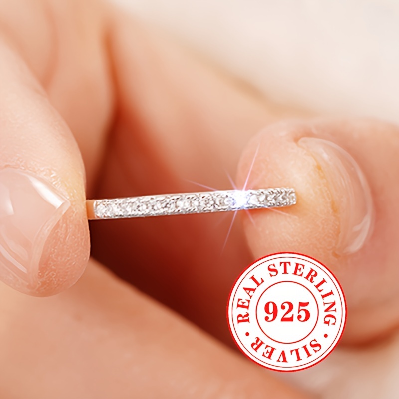 TEMU 여성을 위한 1.2그램 S925 스테인리스 실버 클래식 디자인 싱글 로우 지르코니아 영원한 반지, 프로포즈, 약혼 및 웨딩 주얼리용 (상자 미포함)