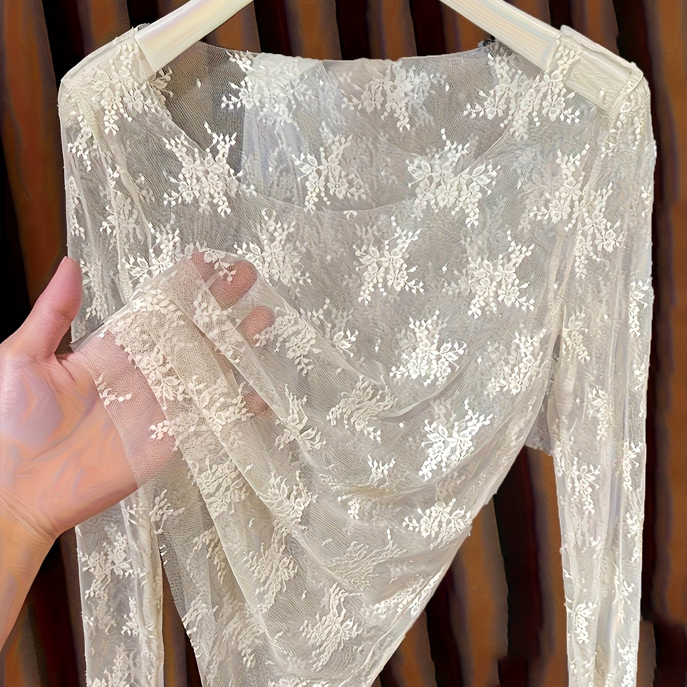 TEMU 플러스 사이즈, 플러스 사이즈 레이스 캐미솔 여성용 신상 스타일리시 스웨터 라이너 시어 블라우스 메쉬 탑