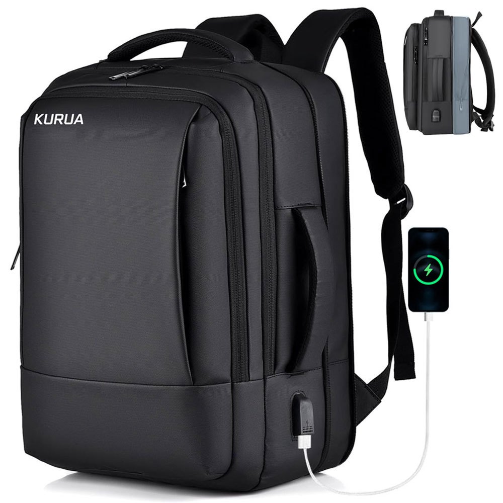 TEMU KURUA 확장형 직장인 대학생 대용량 여행용 17인치 방수 노트북 백팩 블랙