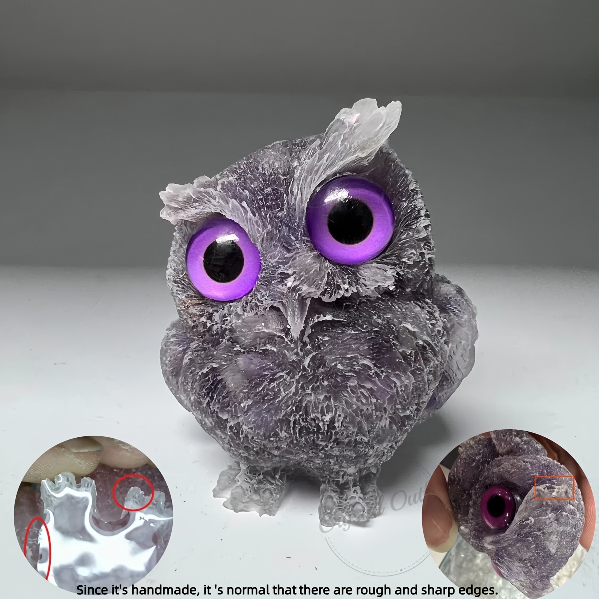 TEMU 자연석 및 인조석 분쇄 레진 올빼미 조각상 데스크탑 장식용, 가구 테이블 상판 장식용 조각품 (눈 색상은 랜덤이며, 특정 색상으로 지정되어 있지 않습니다. 자연석, 색상 변이는 정상입니다.)