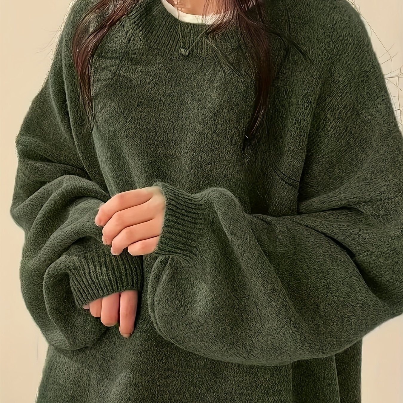 TEMU 오버사이즈 라운드넥 긴팔 솔리드 컬러 풀오버 스웨터