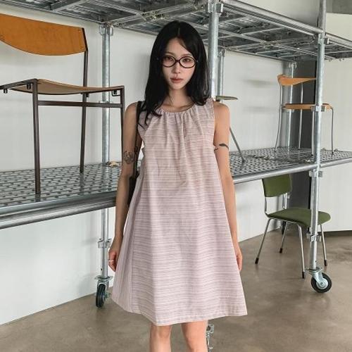 [다잇템]여성 면혼방 줄무늬 슬리브리스 쁘띠 원피스