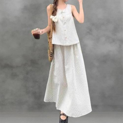 [다잇템]여성 슬리브리스 탑 잔주름 단가라 긴치마 세트 (41297443A)