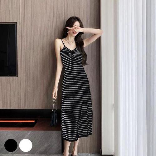 [셀러허브_여성트랜드패션]ONM 여성 원피스 잔스트라이프 끈나시 원피스