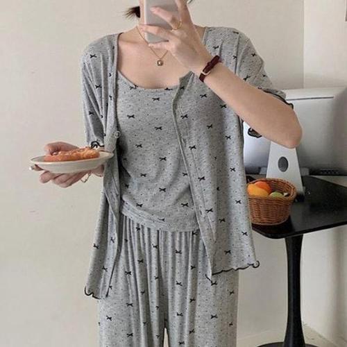 홈웨어 잠옷 4종세트 끈나시 가디건 긴바지 반바지 3타입 캡내장 나시