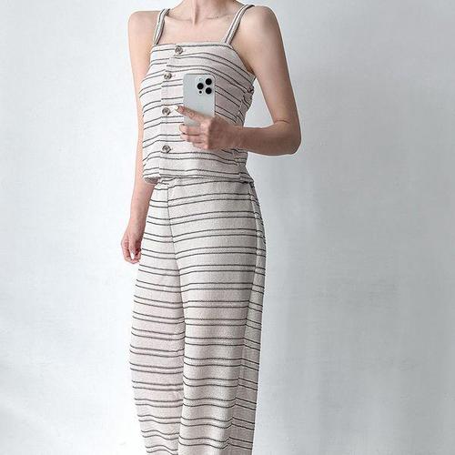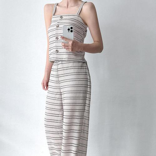 [옷자락]여자 썸머 투피스 단가라 나시 시스루 부츠컷팬츠 세트