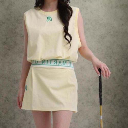 [옷자락]여성 스포츠 자수 시보리 민소매 미니스커트 투피스