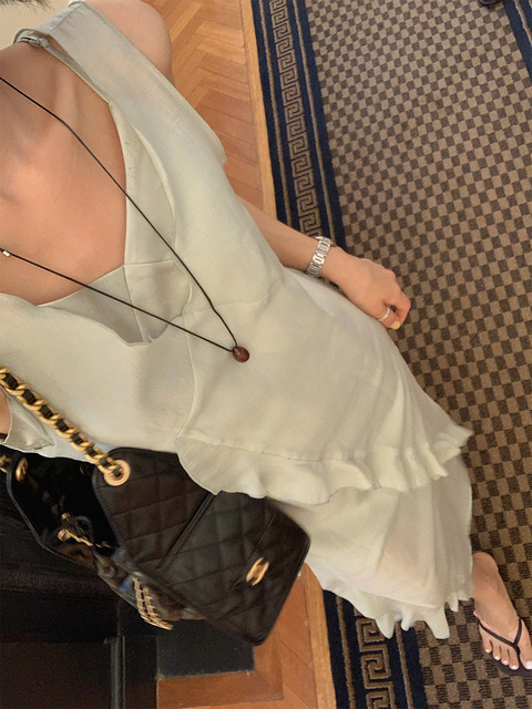 [론크] 러플 레이스 슬리브리스 캐미 탑 레이어드 드레스 (민트)