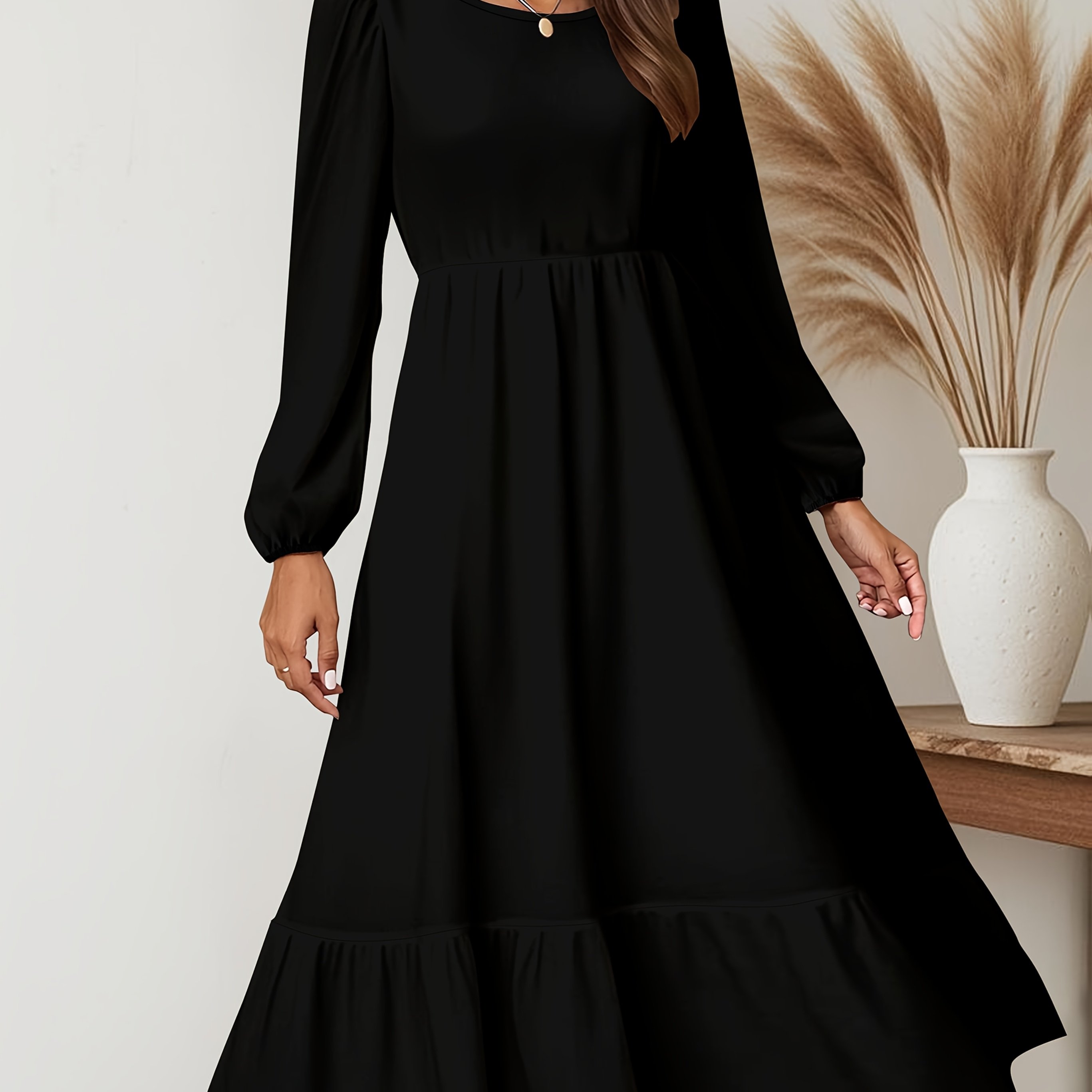 TEMU 여성 원단 단색 긴팔 가을 원피스, 우아하고 패셔너블한 캐주얼 하이웨이스트 러플 밑단 고탄성 허리밴드 디자인 원피스, 여성 의류