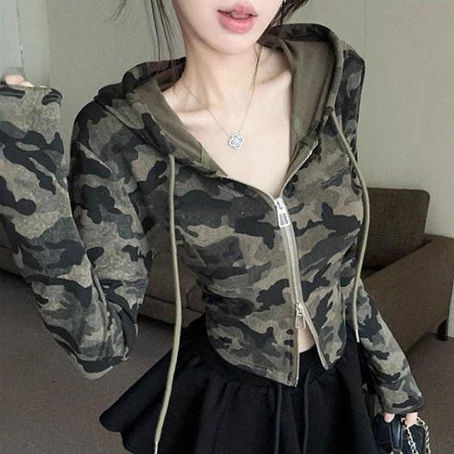 여성 슬림핏 크롭 후드집업 투웨이 밀리터리룩 WFKORQM