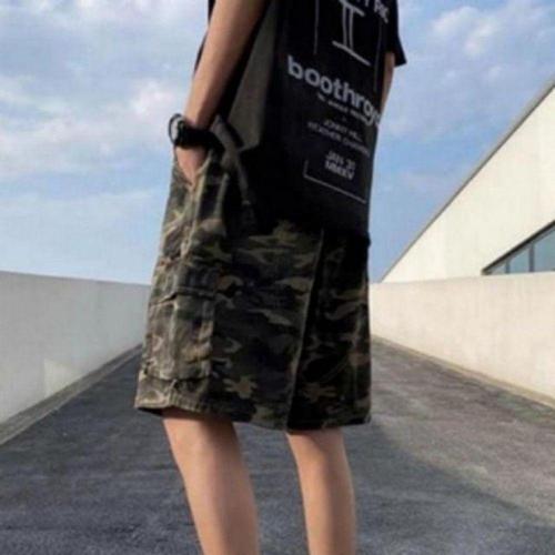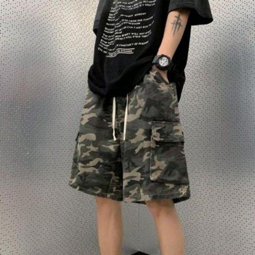 남자 밀리터리룩 여름 루즈핏 반바지 5부 허리밴딩 카모 팬츠 스트릿 패션 데일리룩