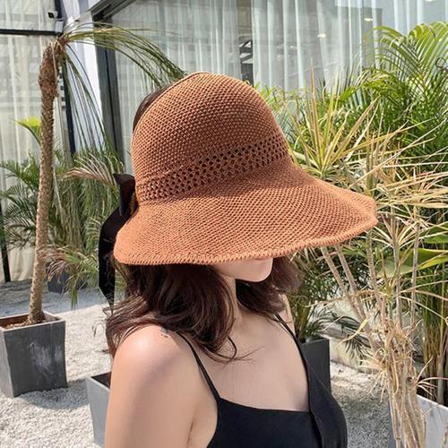 [다잇템]여자 리본포인트 SS 밀짚 트립 바캉스모자 썬캡 (12062158A)