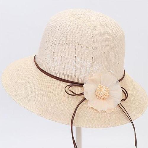 [다잇템]여자 실버세대 트립 플라워포인트 밀짚 버킷햇 (16283070A)