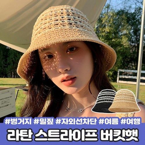 [라일리] Rly 여성모자 밀짚 라탄 레인보우 버킷 벙거지 모자 SLT-D