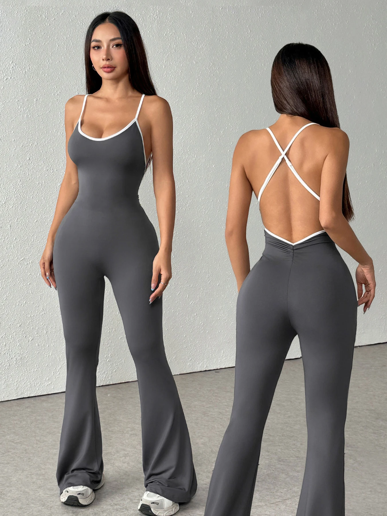봄과 여름 새로운 여성 점프 슈트 긴 소매 솔리드 컬러 스키니 점프 슈트 패션 스포츠 피트니스 점프 슈트 풀오버