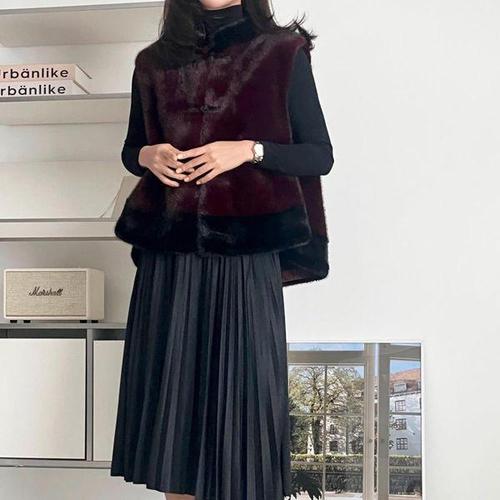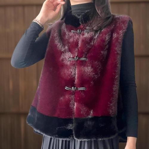 [신상오픈런]여성용 투톤 힙커버 퍼 조끼 매듭 디자인 인조밍크