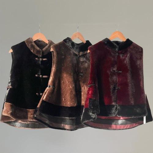 [신상오픈런]여성용 투톤 망토 인조밍크 중년 힙커버 퍼 조끼