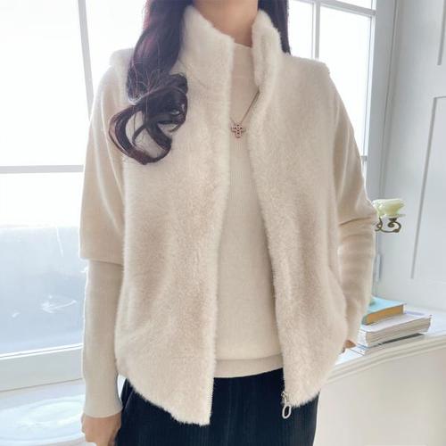 [미라클세븐]여성용 사랑스러운 셔링 소프트퍼 겨울 조끼 캡소매 인조밍크
