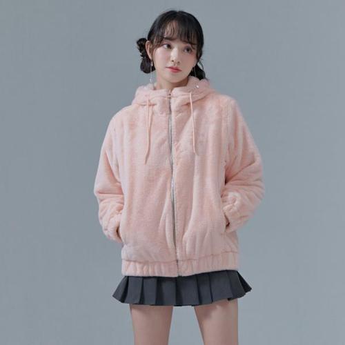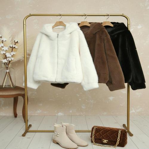 여자 후디집업 페이크밍크 FW 소프트퍼 점퍼