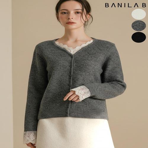 [바닐라비]여성 레이스 브이넥 버튼 니트