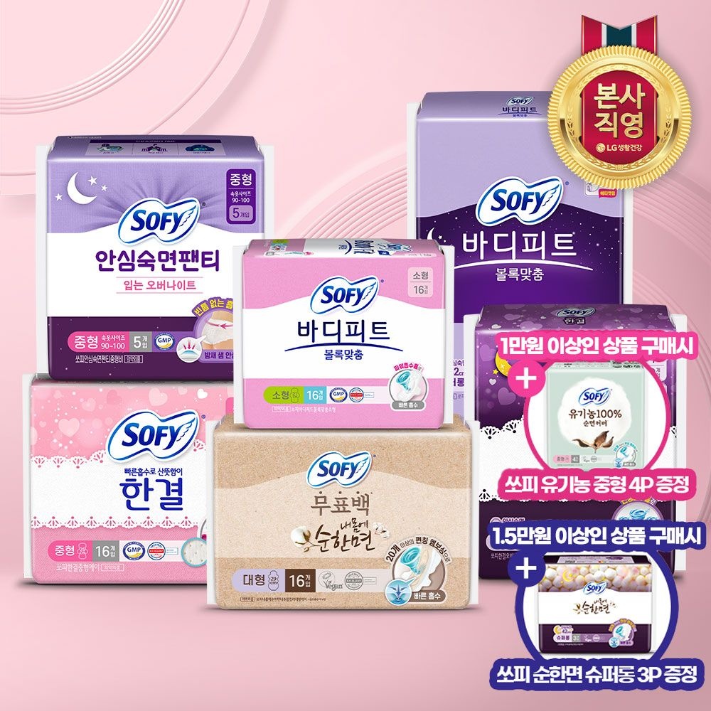 [LG생활건강] 쏘피 바디피트 귀애랑 한결 생리대 모음전 (+쏘피 사은품증정)