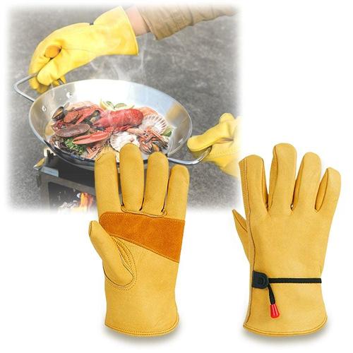 캠핑 화로 안전 소가죽 장갑 바베큐 BBQ 작업 보호