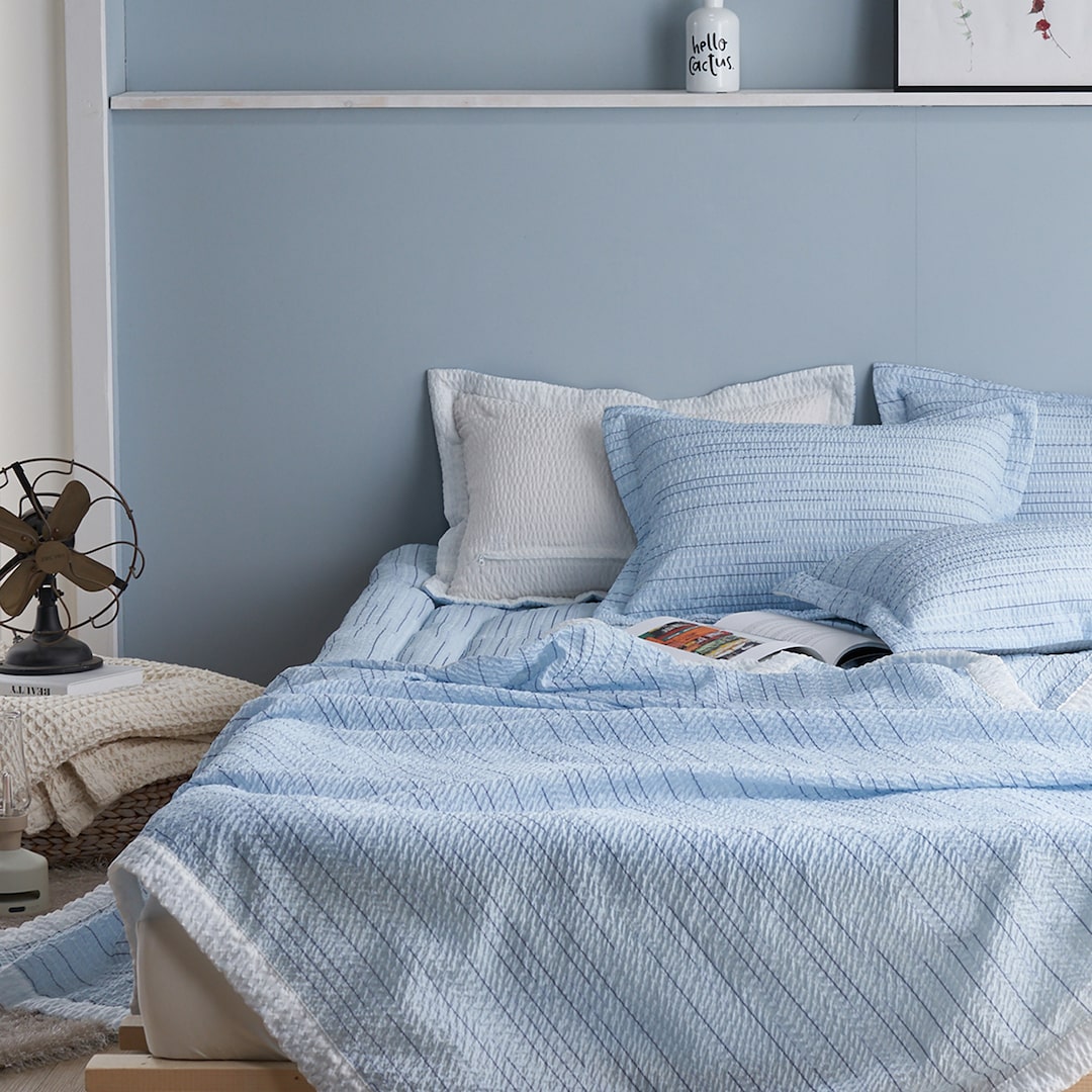 국산 시어서커 여름이불 세트 SS/Q 2컬러 그레이 블루 토퍼 침구 호텔 홈쇼핑 아리엘